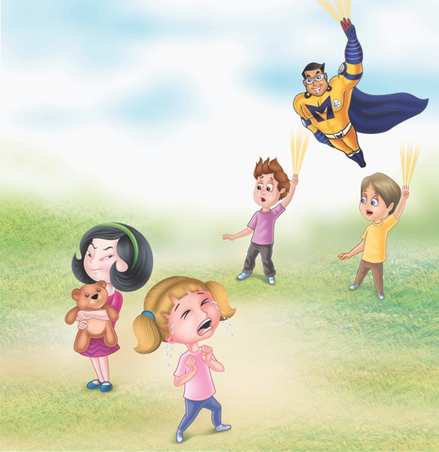 A little boy is tired of having other children be mean and selfish. He has a dream that a superhero, Manner-Man, comes and saves him from ill-behaved children and also teaches everyone how important it is to be nice. The next day on the playground, when a child is being mean, he calls upon Manner-Man. To his surprise, Manner-Man arrives and helps him by giving all of the children skills in what to say and do when they encounter a situation where someone isn’t being kind. All of the children learn and then become part of the Manner-Man team!