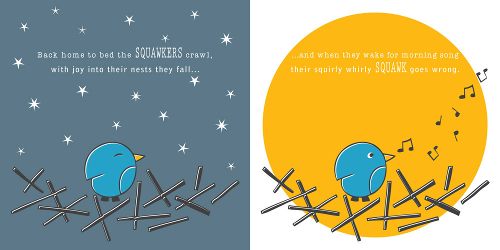 - The squawks can be as silly or as dignified as you make them. So multiple readings can easily be very different readings — keeping it interesting and playful even when you’ve read it to the little ones 6,244 times.