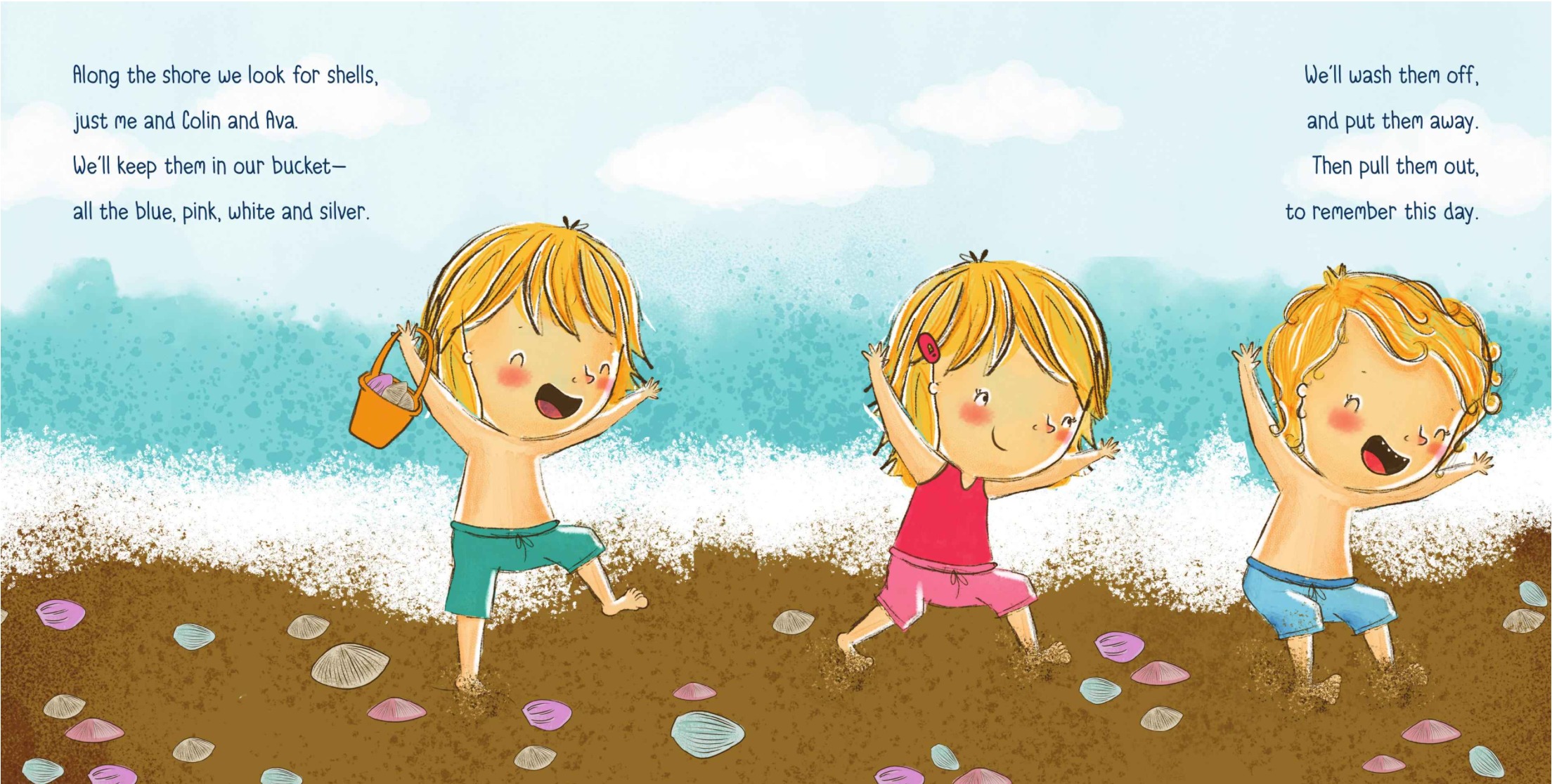 On this particular day, Ben tells us he is dreaming about the beach – one of his favorite places. He thinks about the crabs, the sand, the waves, and building a sandcastle. He dreams of his father’s kite flying high in the sky and then he imagines himself flying in the sky with the kite. He goes with his siblings, imagining that they’re looking for shells. Then it time to go home and time for bed. He then drifts off to sleep and wonders what the next day’s adventures will bring.