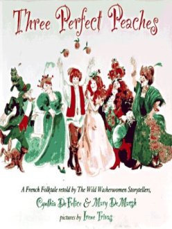 Three Perfect Peaches A French Folktale retold by The Wild Washerwoman Storytellers by Cynthia DeFelice & Mary DeMarsh Pictures by Irene Trivas. Ages 4+ (2.5-year-old son loves it). Orchard Books. March 1995. Fiction. 32 pages. ISBN-13: 978-0531068724. No longer in print but several used copies are available for $0.01.